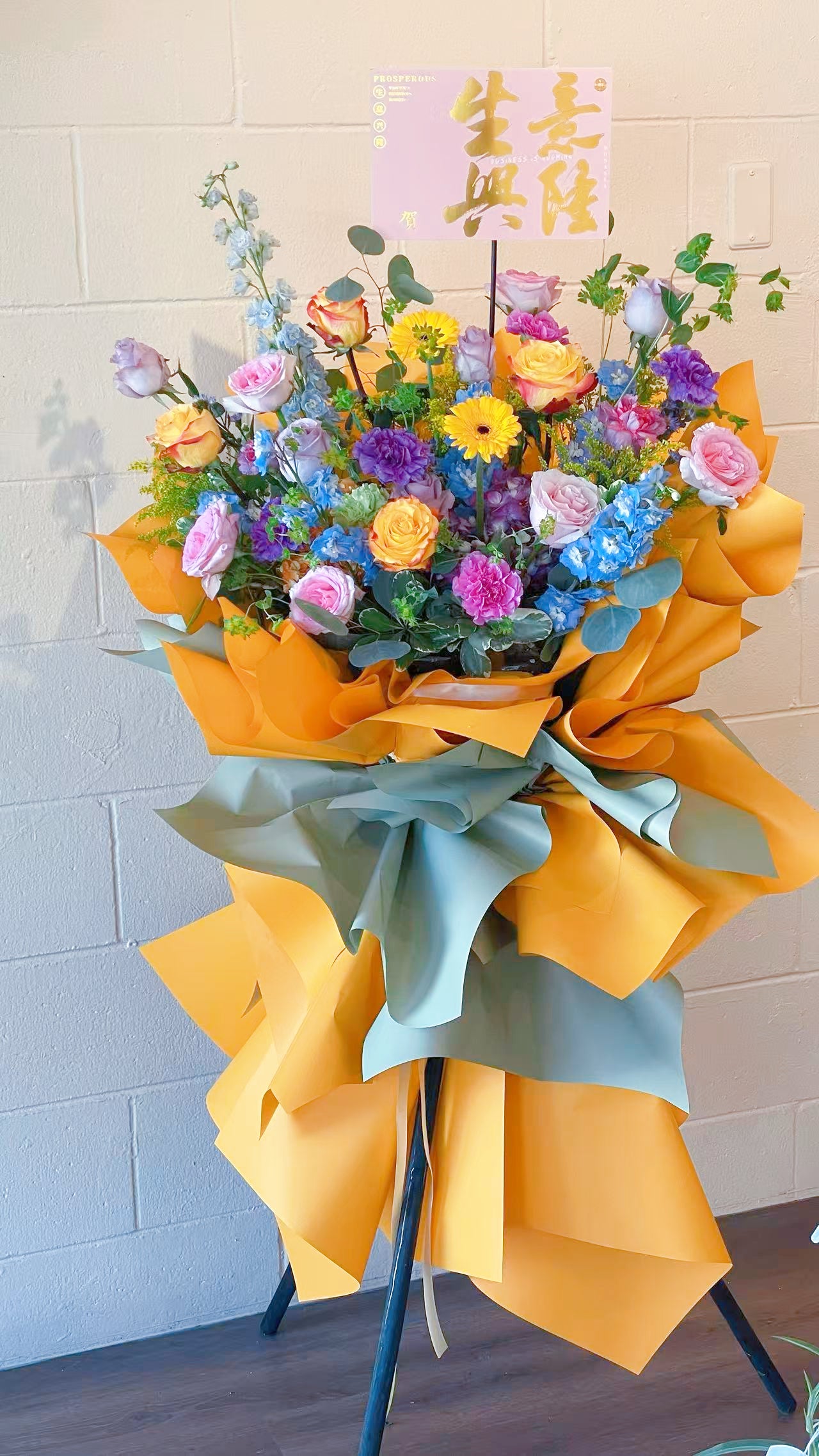 Product including the stand, card message and wrapping paper