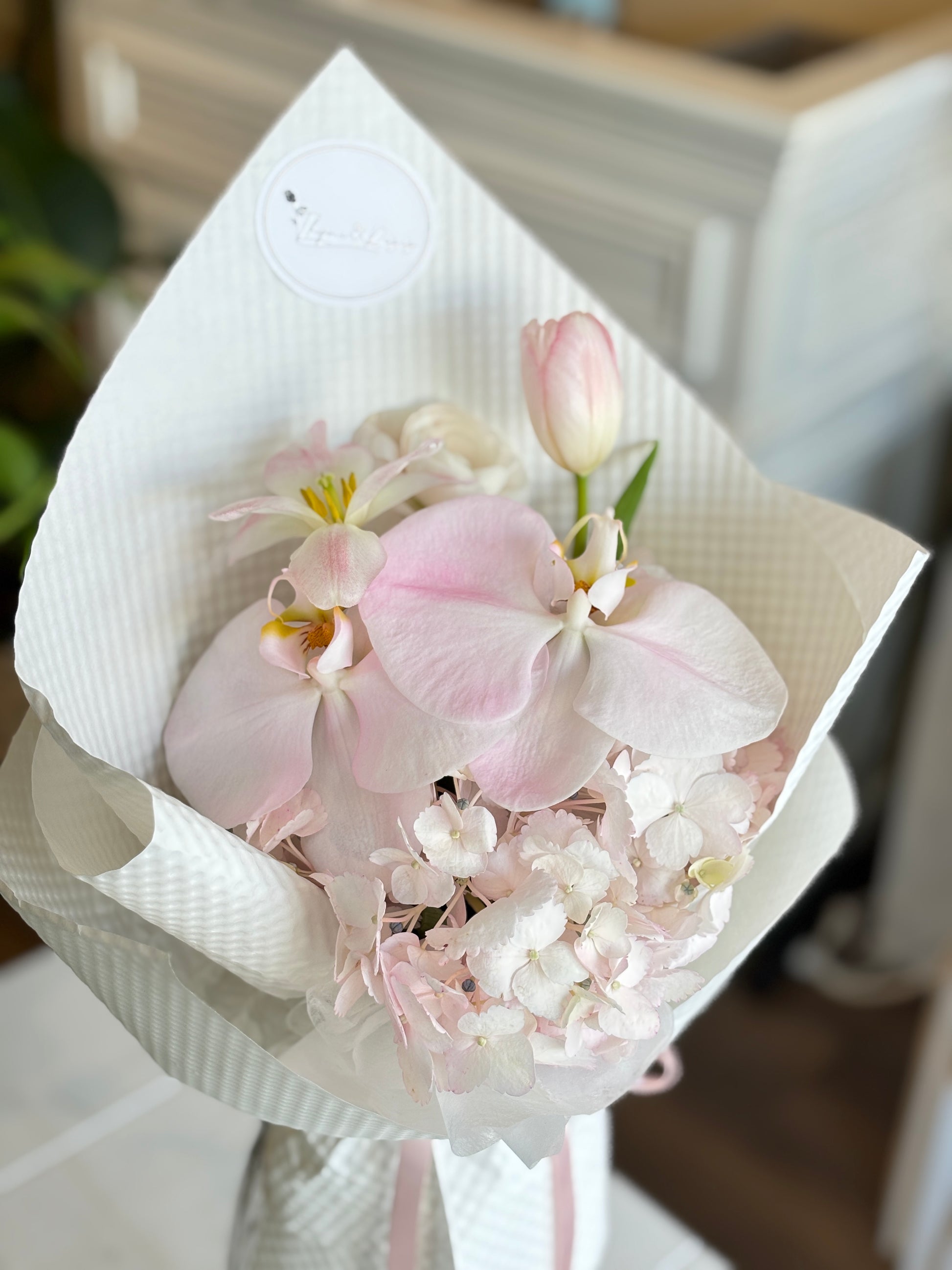 Flower Materials: Orchid and fresh flowers of the season